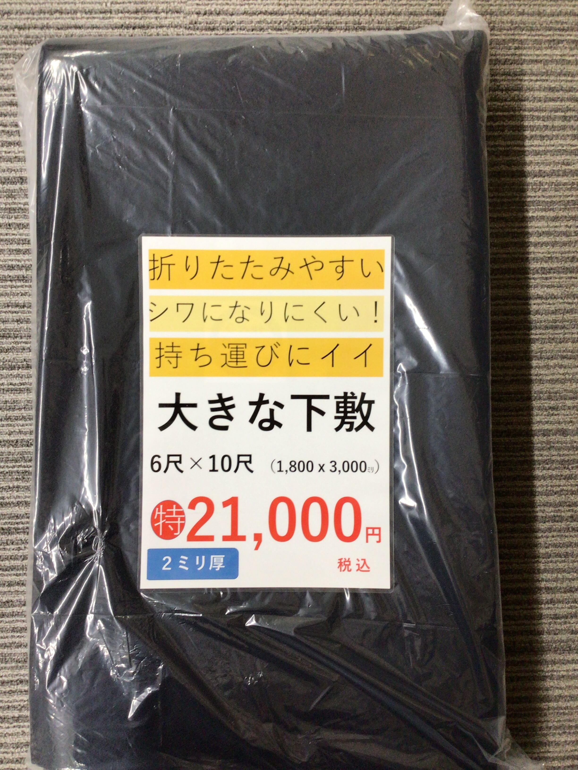 サイズ:1800㎜×3000㎜(6尺×10尺) 厚み:2ミリ 色:紺 重量:約2.35kg